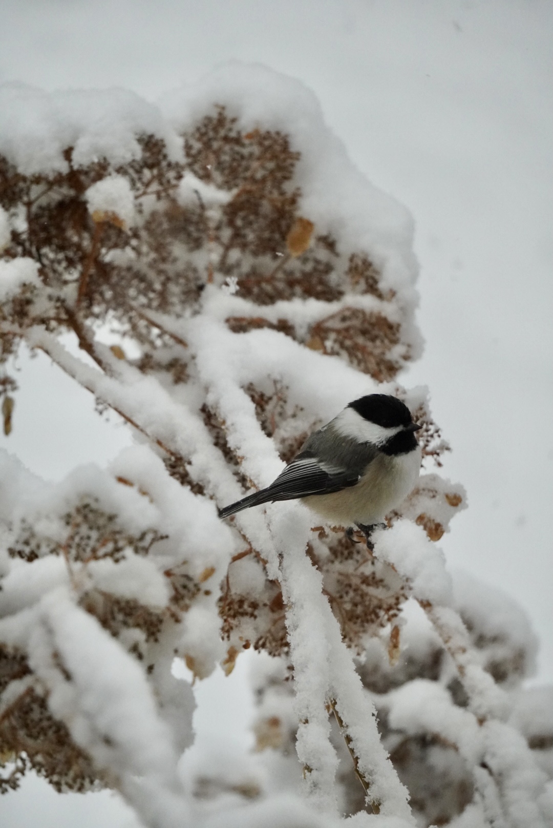 - Plant native trees and shrubs to provide cover and natural foraging opportunities. Native shrubs also support caterpillars, a vital summer food source for chickadee nestlings.
